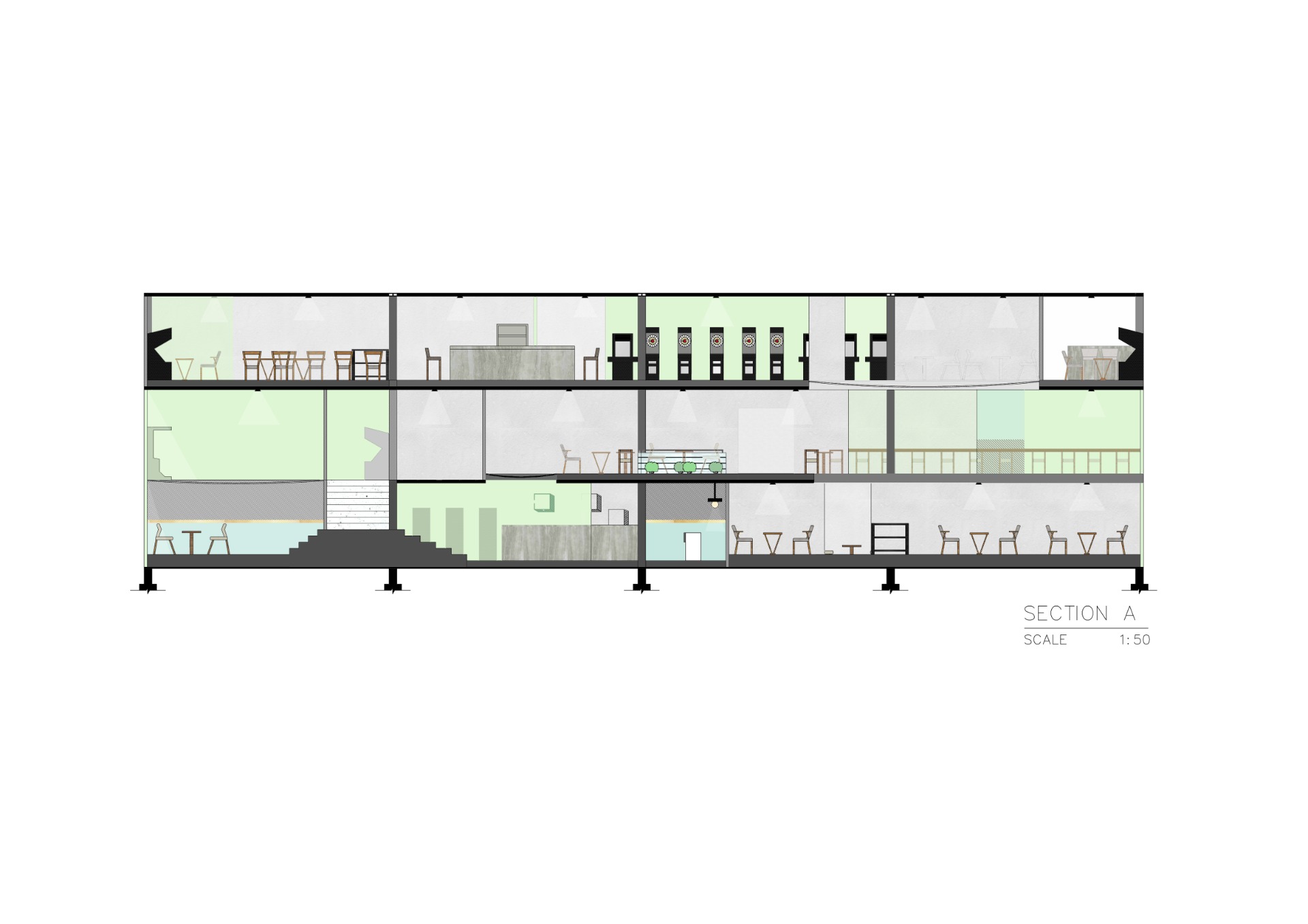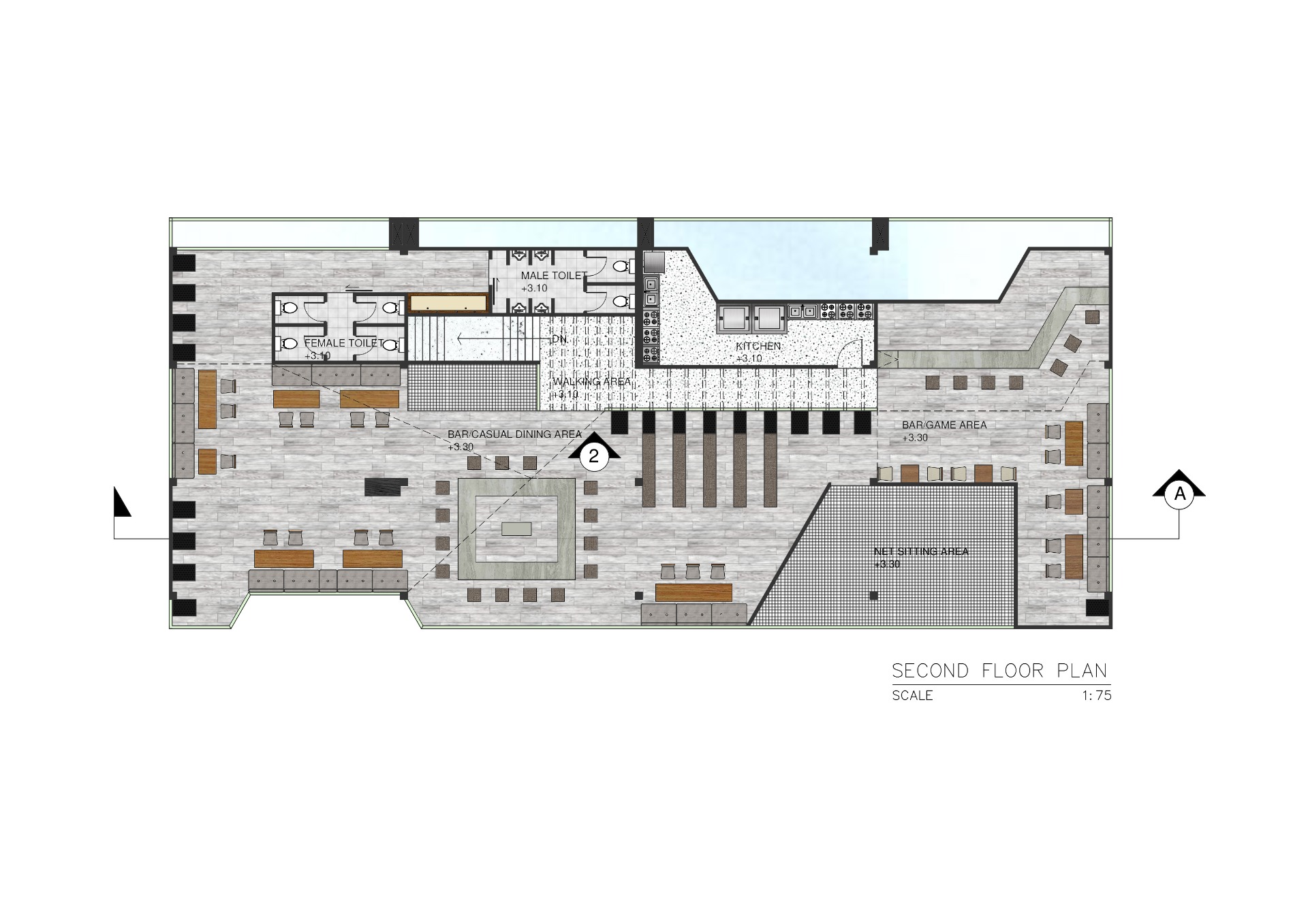 二樓著重於玩樂,有網子遊戲區、飛鏢機及遊戲機讓客人享受在重活自然中的時光。二樓還有酒吧區讓客人可以小酌一下,遠離城市中的喧嘩。