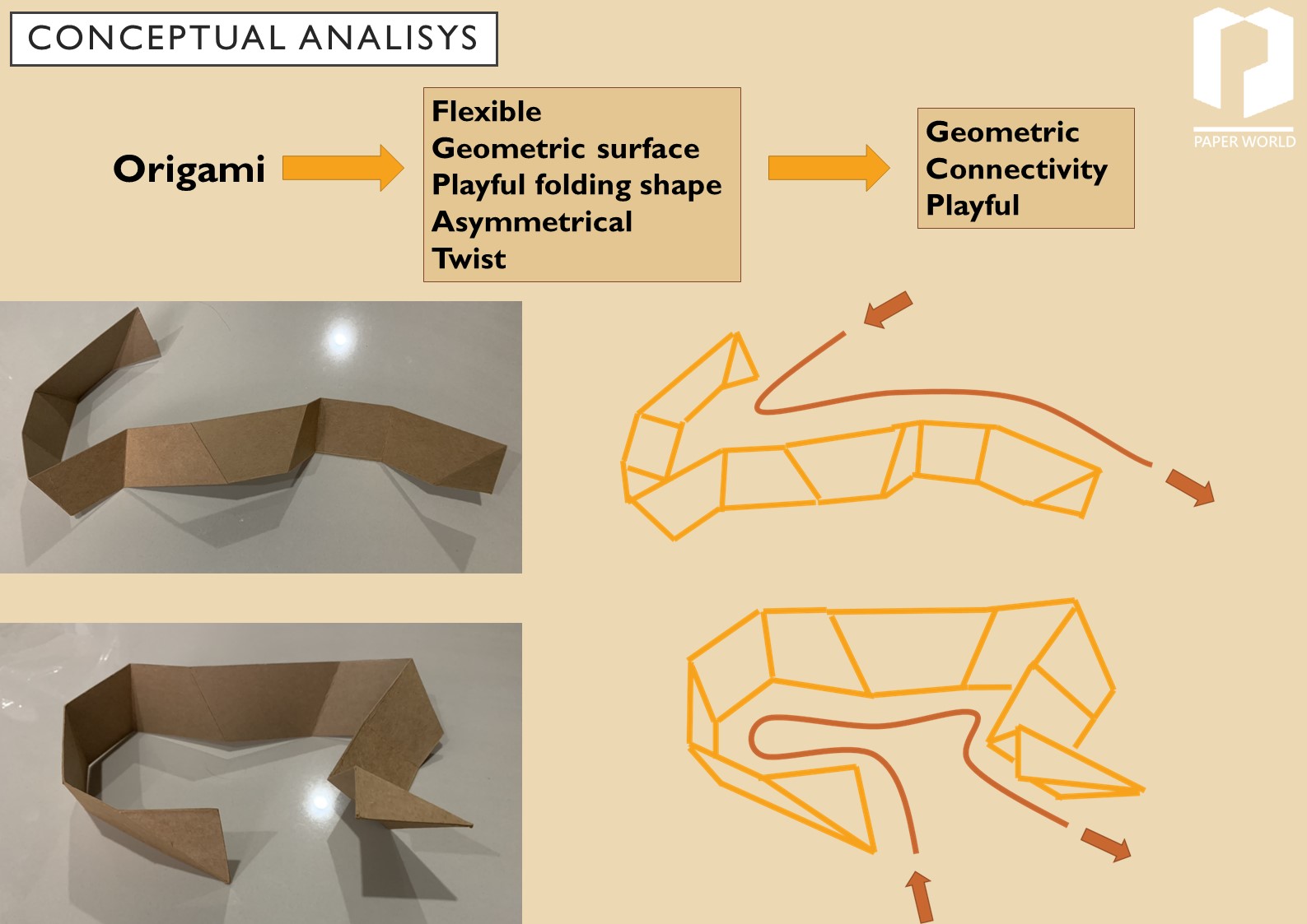 從摺紙中發想出空間概念,將摺紙的靈活性運用在動線之中並將其區分出博物館中的不同區域。